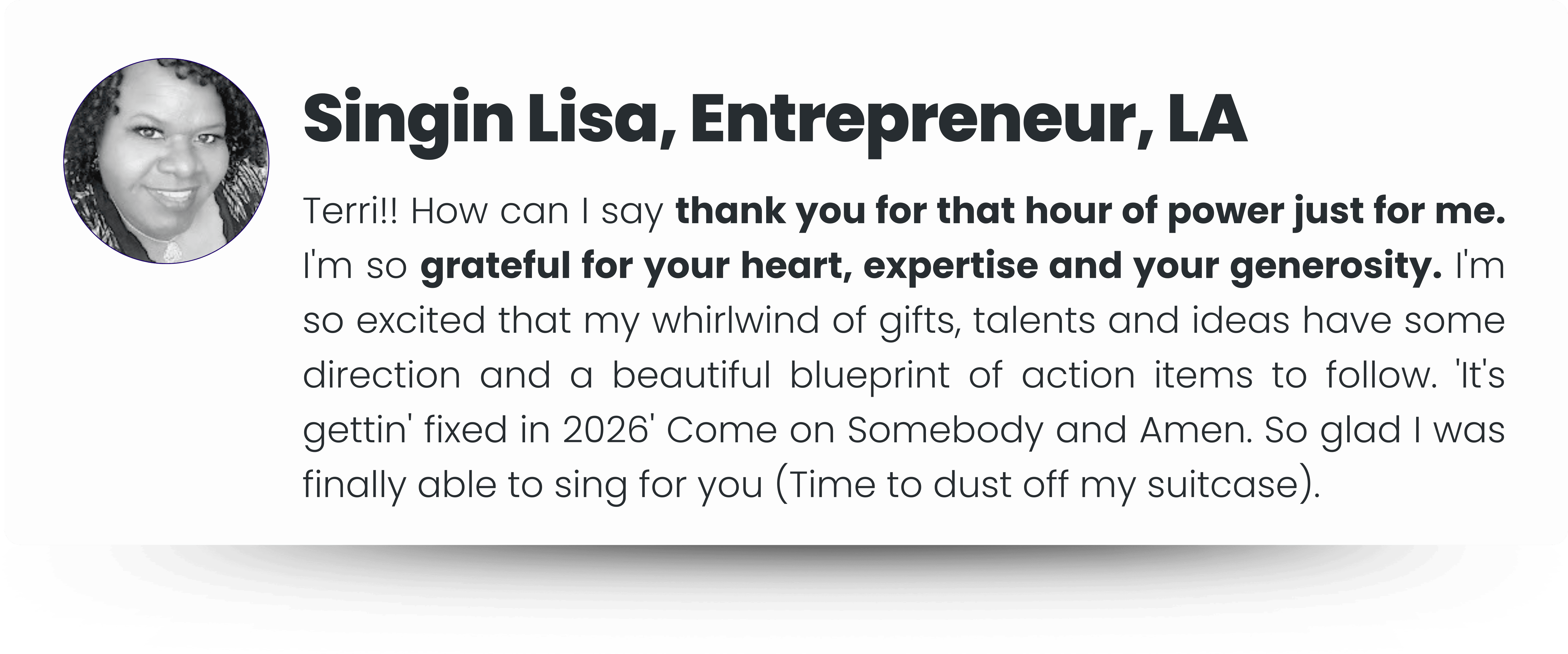 A sought-after keynote speaker, Terri’s programs are designed to help audiences act immediately—improving credit profiles, unlocking capital, acquiring assets, and scaling income with integrity. Self-employed since 38, she is committed to helping others create bankable businesses and build wealth that lasts.